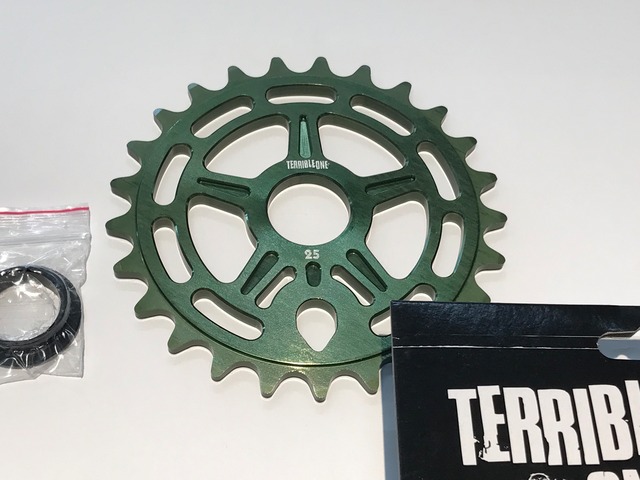 Terrible One LOGAN’S RUN SPROCKET 25t Green 22mm (19mmアダプター付属) ☆24mm取り付け不可☆ 剛性の7075 T-6アルミ製スプロケット。シンプルで空きのこないデザインで軽量化にも貢献しております。 SPEC THICKNESS 6mm WEIGHT 実測 57g