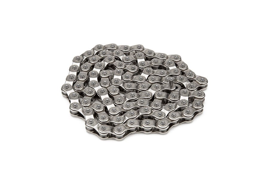 Cinema Sync のハーフリンクチェーンは、追加のリンクを必要とせずに完全に調整可能であり、曲線状のサイドプレートにより、研削ミス時にリンクが引っかかった際にチェーンが破損する可能性を低減します。鍛造ピンはチェーンの強度をさらに高め、テフロンコーティングはチェーンとスプロケットの摩擦と摩耗を低減します。各リンクにデボス加工されたシネマロゴが全体のデザインを完成させ、事前に挿入されたコネクタピンにより取り付けが容易になります。8tドライバー以上に対応しています。