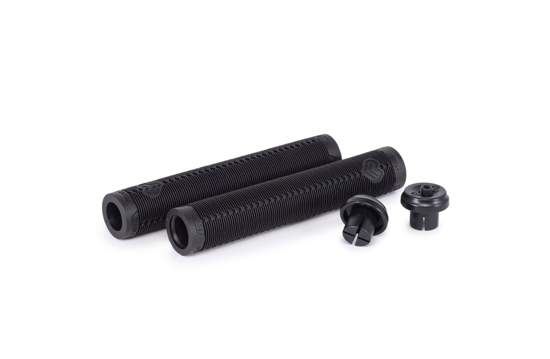 非常にソフトでありながら優れた耐久性もかねそなえたVEX20コンパウンドを使用したスリムなグリップです。 刀の柄を思わせる独特のパターンが適度なクッション性を生み、握り心地も良好です。 また、ボルトでハンドルバーへ固定するTECH BARENDが標準で付属します。
